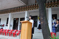 協会代理の井戸さんは、生徒達に「ブータンの子供達もきっと将来日本や世界を訪れることができます。しかし、今はブータンにいても本を読むことによって世界中のことを知ることができます。みなさん、読書を楽しんで下さい。」と挨拶。