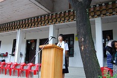 6月27日の贈呈式では、学校の先生と生徒(上級生のみ)、パロの教育委員長、そして半田ブータン青少年交流協会の代表として井戸さん、他のみなさんが参加して、盛大に贈呈式が執り行われました。