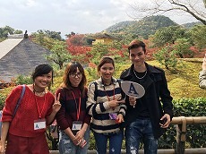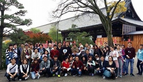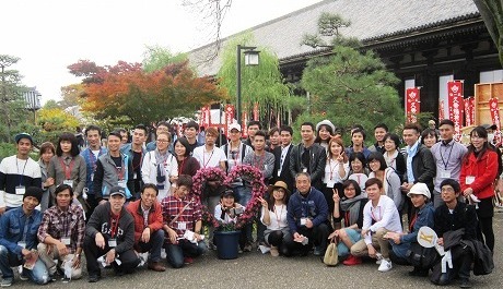 日本語学習生が、日本文化視察旅行で京都へ行きました。ベトナム、中国、フィリピン、インドネシア、ブラジル、ペルー、タイからの生徒と引率の先生、合計95名で、紅葉の金閣寺、三十三間堂、伏見稲荷を見学しました。