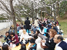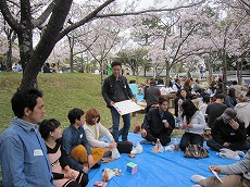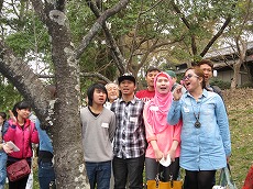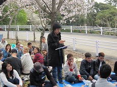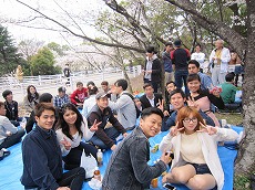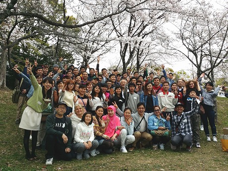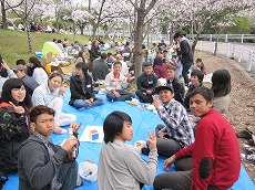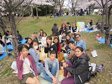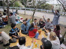 、総勢78名(外国人65名、日本人13名)で、雁宿公園にお花見に行きました。おにぎりを食べながら、自己紹介や伝言ゲーム、各国の歌披露などで盛り上がりました。満開の桜の下、日本の春を満喫しました。