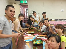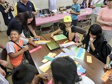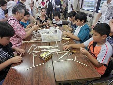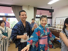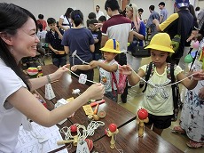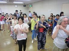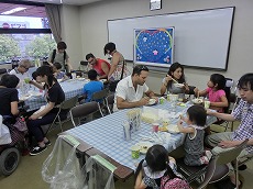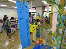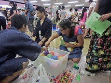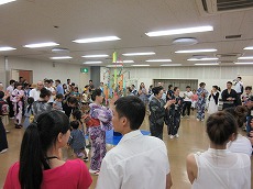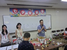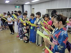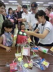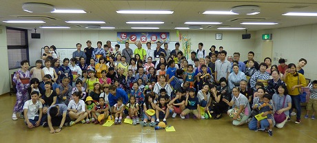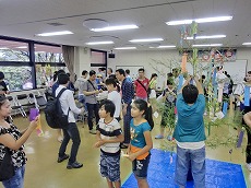 七夕交流会を、雁宿ホール視聴覚室にて開催しました。外国人101名、日本人96名の総勢197名が、短冊で飾られた笹を囲んで、射的、水ヨーヨーなどの縁日体験、盆踊りなどを楽しみました。日本語教室の生徒たちが、スタッフとして各コーナーに協力してくれました。