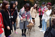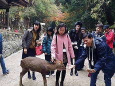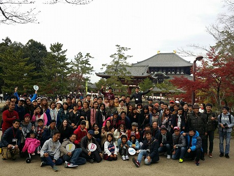 日本語学習生とボランティアの先生で、日本文化視察旅行として奈良に行きました。国籍は日本を含め9カ国、総勢84名が参加しました。東大寺や春日大社を見学しながら、日本の古都を満喫しました。