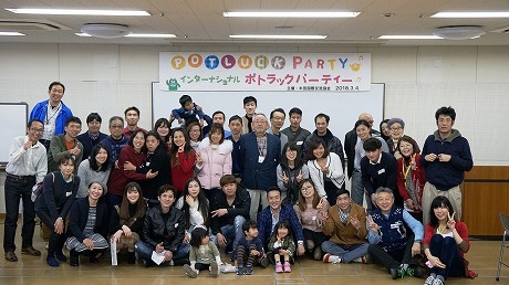第14回インターナショナルポトラックパーティーを開催しました。7カ国からの外国人24名と日本人29名の計53名が、各国の料理を持ち寄って集まり、ゲームや歌などで楽しい時間を過ごしました。