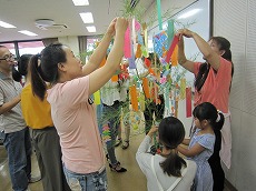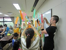 日本語教室の時間の中で、七夕の紹介をしました。それぞれ願いごとを書いた短冊を笹に飾り、その後は皆で「たなばたさま」や「ふるさと」を歌いました。