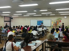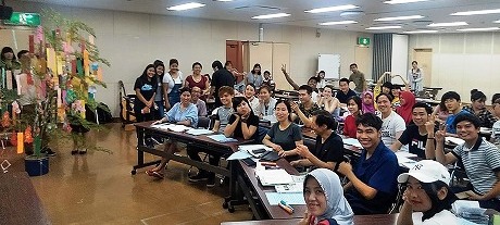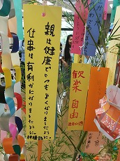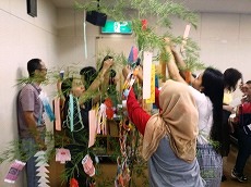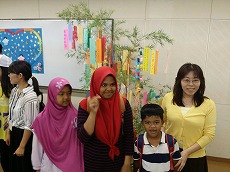 日本語教室の時間の中で、七夕の紹介をしました。それぞれ願いごとを書いた短冊を笹に飾り、皆で「たなばたさま」や「ふるさと」を歌いました。
