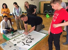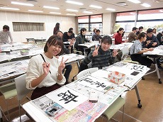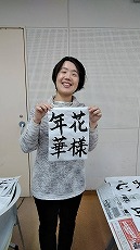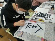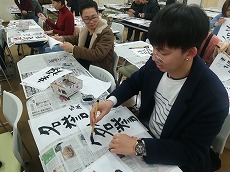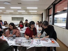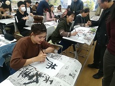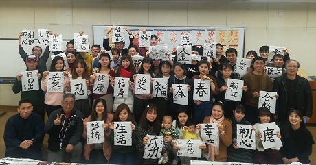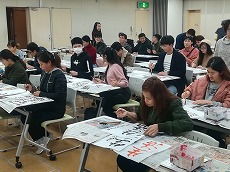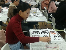 新年最初の日本語教室では、書初めを行いました。28名の生徒が参加し、先生に教えてもらいながら、