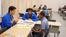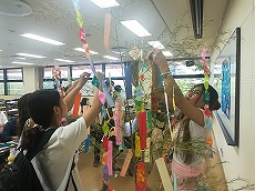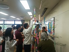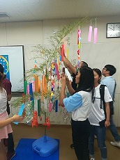 日本語教室の時間の中で、七夕の紹介をしました。それぞれ願いごとを書いた短冊を笹に飾り、皆で「たなばたさま」や「