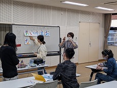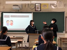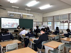 半田中学校2年生のキャリア学習プログラムに参加しました。協会の紹介や半田市及び日本の在留外国人について、さまざまな角度から説明し、その上で生徒に課題を提示して、第2回目に生徒から解決策の提案をしてもらいました。
