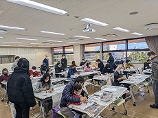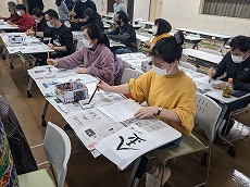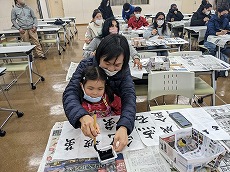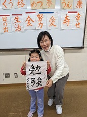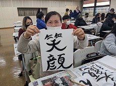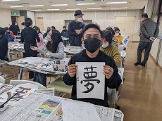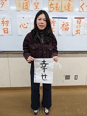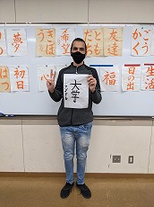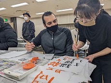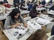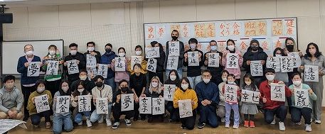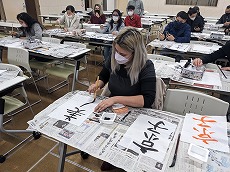新年最初の日本語教室では、3年ぶりの書初めを行いました。27名の
