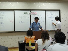 講師は半田警察の皆さん。交番・交通・災害・全般とそれぞれの講師からの説明を熱心に聞く日本語受講生のみなさん。(8月22日にも開催いたしました。)