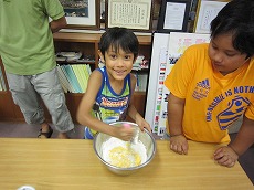 外国人のこども学習支援クラス「うさぎ」クラスで、夏休みイベントとして、生徒と一緒にクレープやフルーチェ、そしてケーキを作り、楽しみました。
