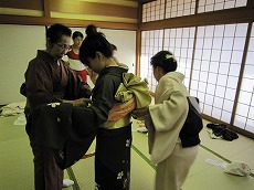 着付けの先生からは、日本の着物のお話しを聞き、そして、生徒全員が日本の着物を試着しました。