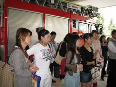 消防署を見学に行きました。119番通報・救急のお話しを聞き、受信指令室の見学、その他、消火器取扱訓練、地震車体験、消防署内の見学をしました。