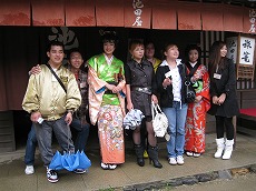 心配された台風は去りましたが、生憎昼前から雨が降り出し、傘をさしての散策となりましたが、京都を初めて訪れるという外国人の方も多く、嵐山での京料理を満喫した後は、太秦映画村で日本の